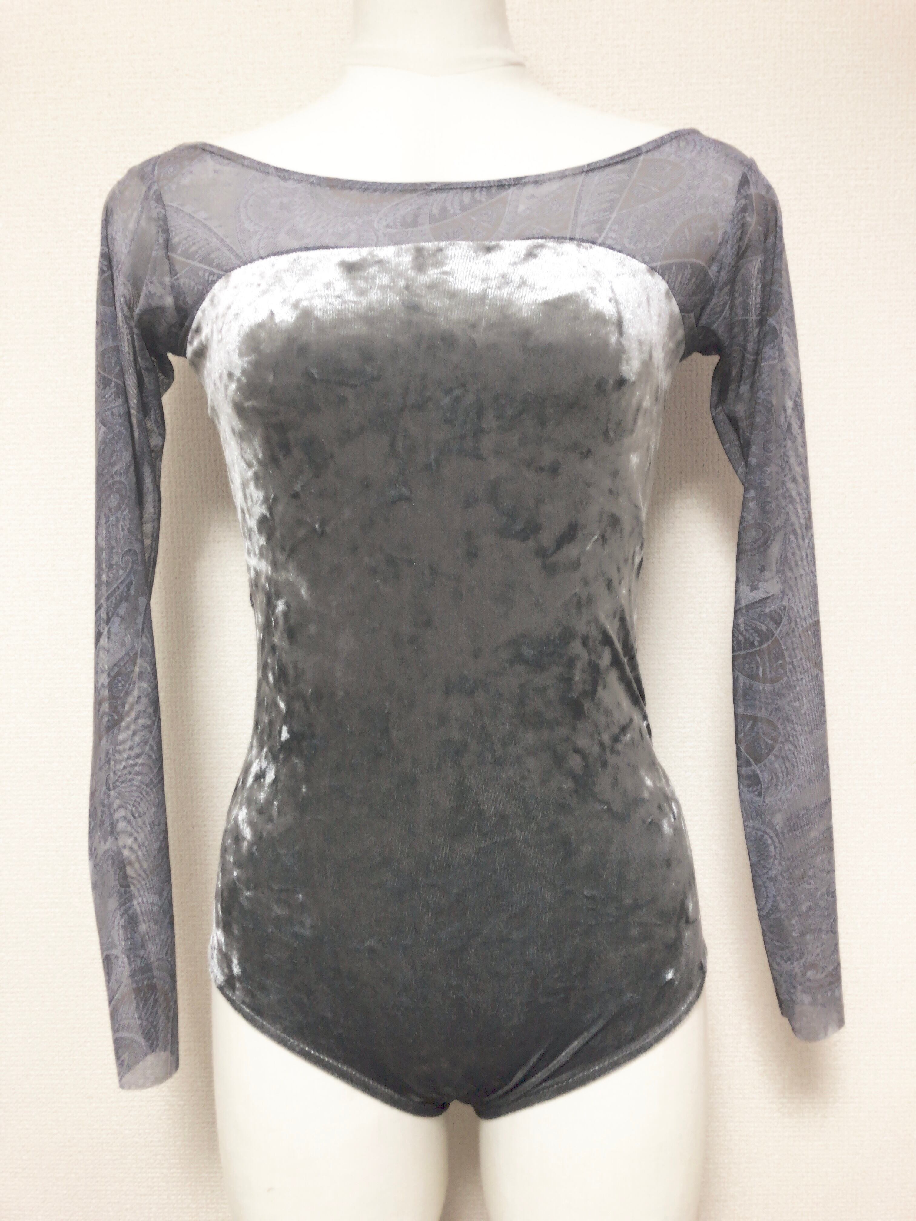 シルバーのベルベット生地にペイズリー柄の様なメッシュ生地を合わせました。